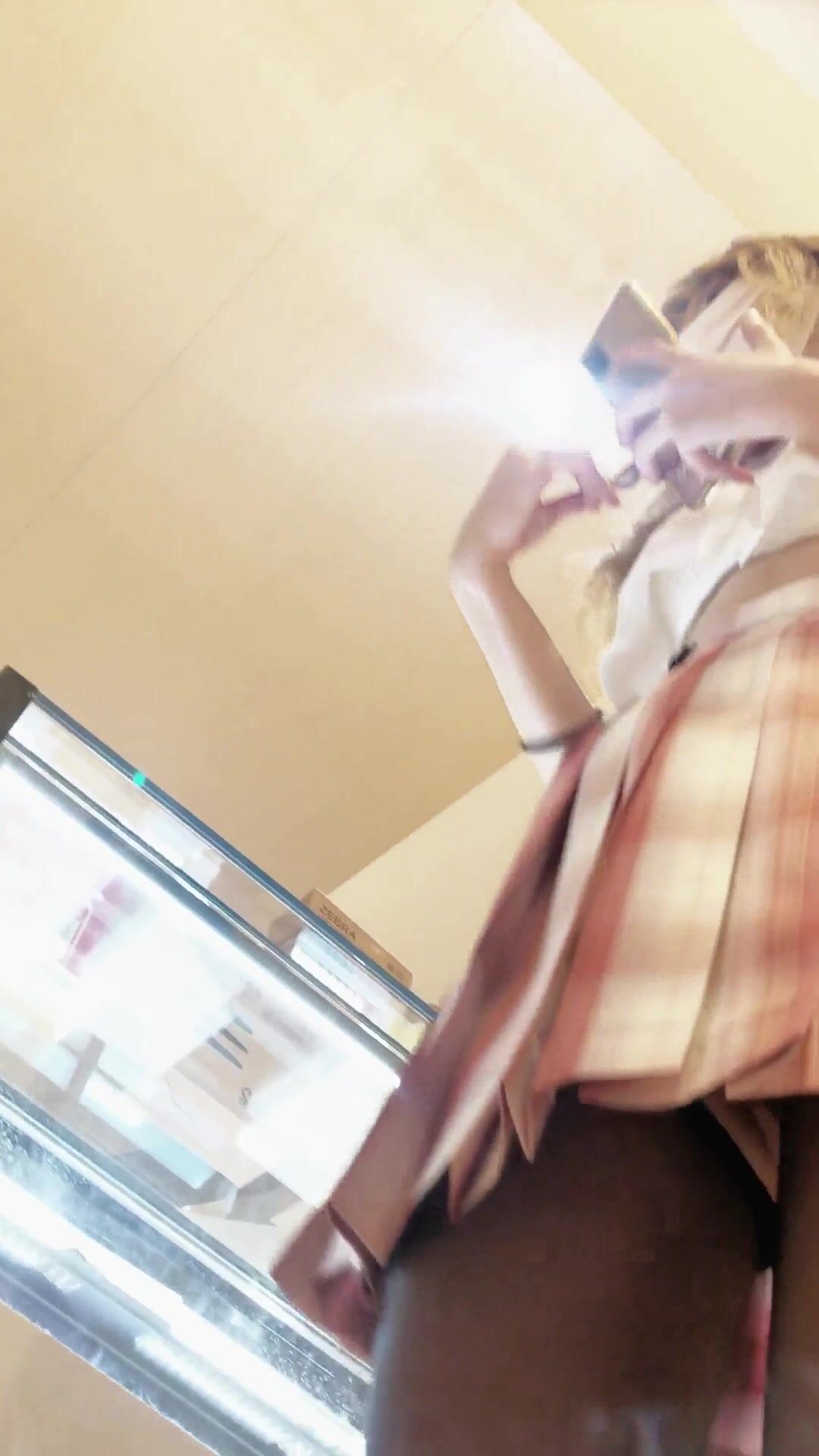 一路跟踪抄底极品JK裙黑丝美女 竟然没穿内裤人美B更美