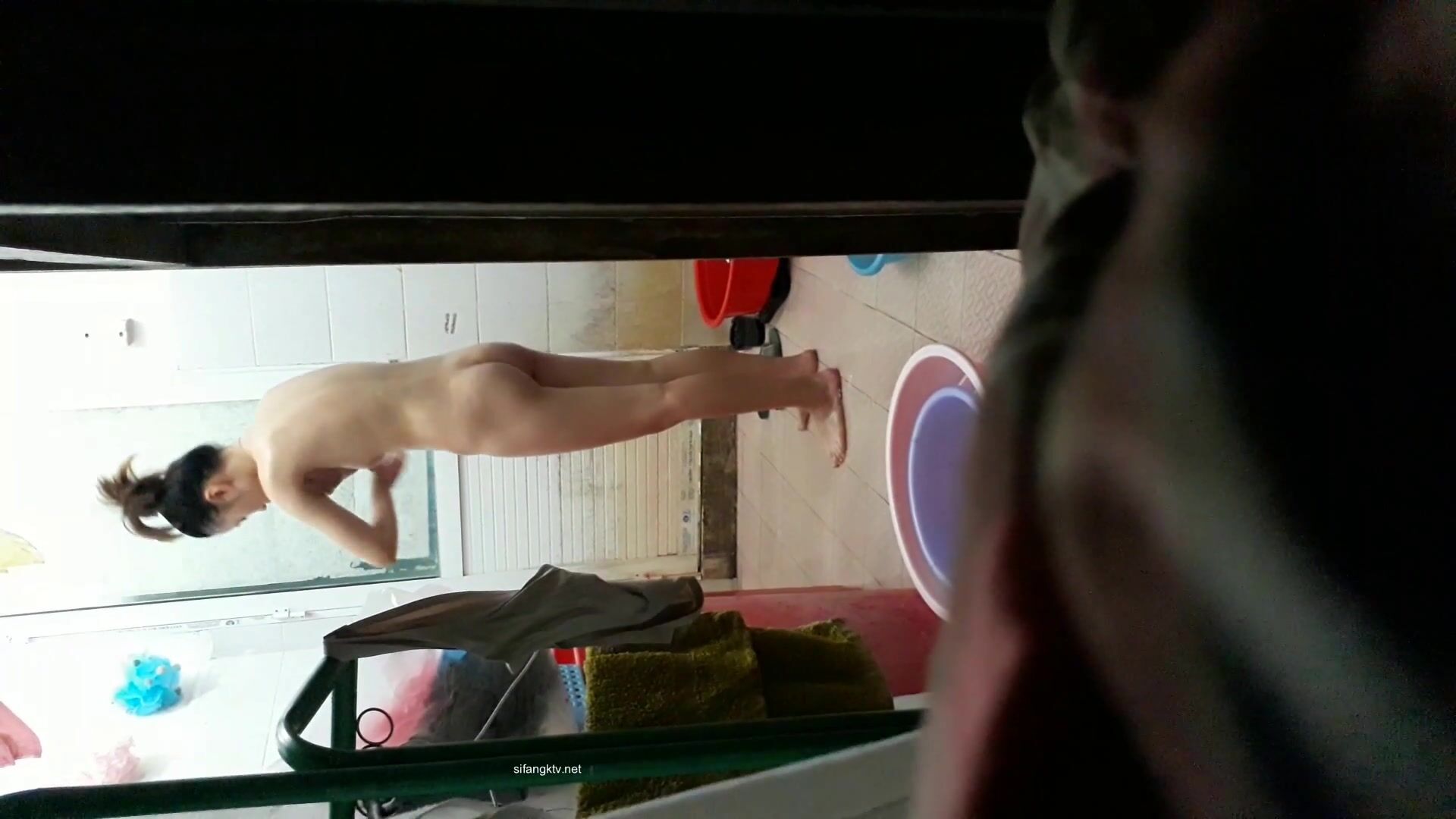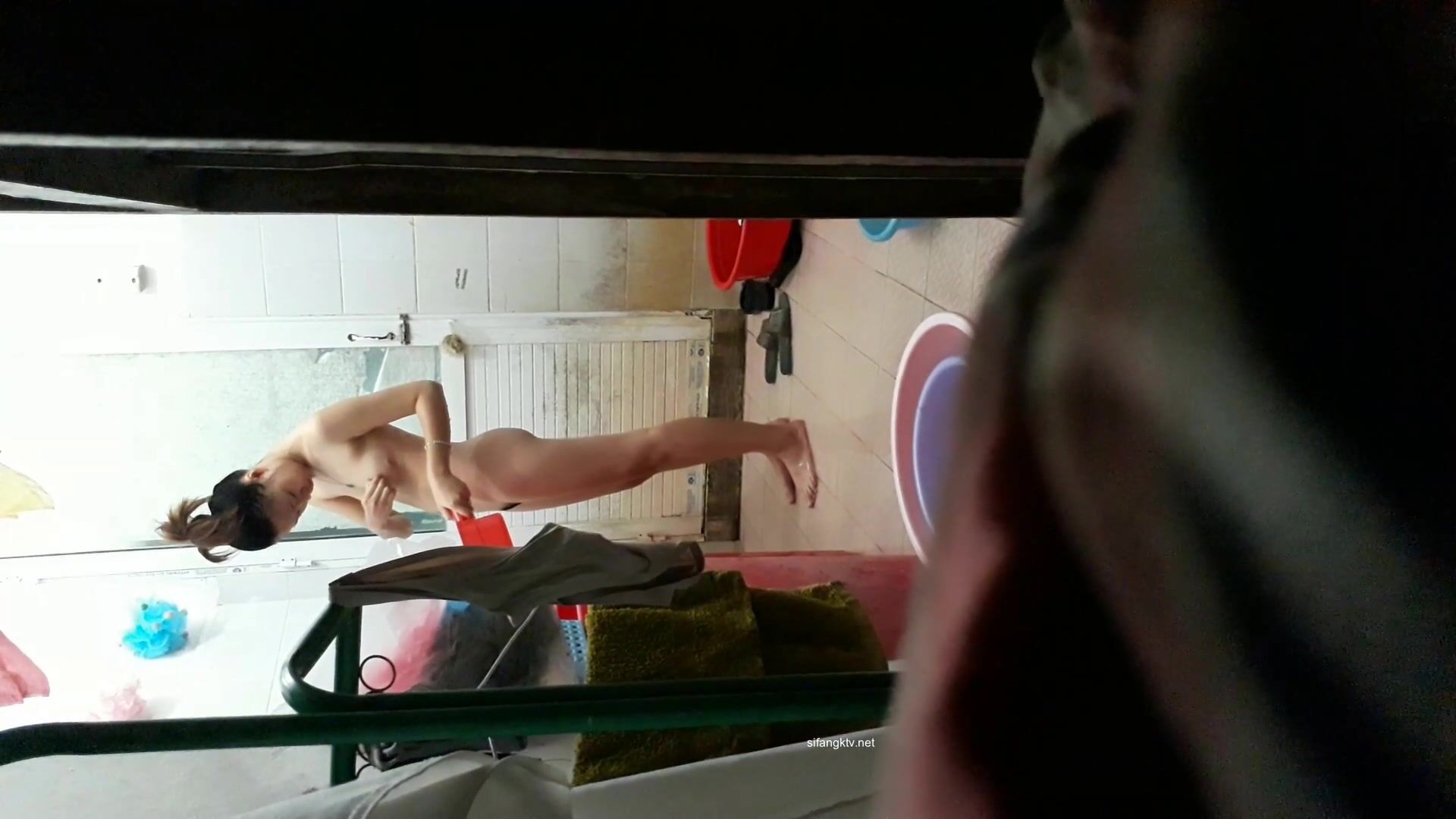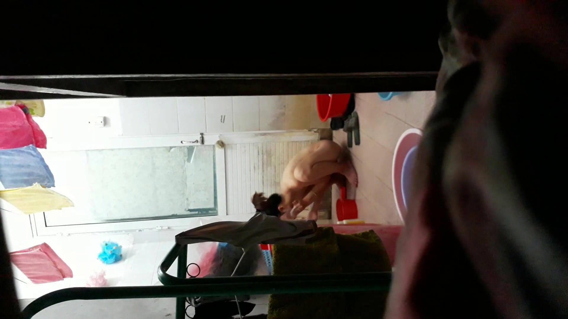 合租房门缝偷窥对门的小媳妇洗澡 白白嫩嫩的身材还不错