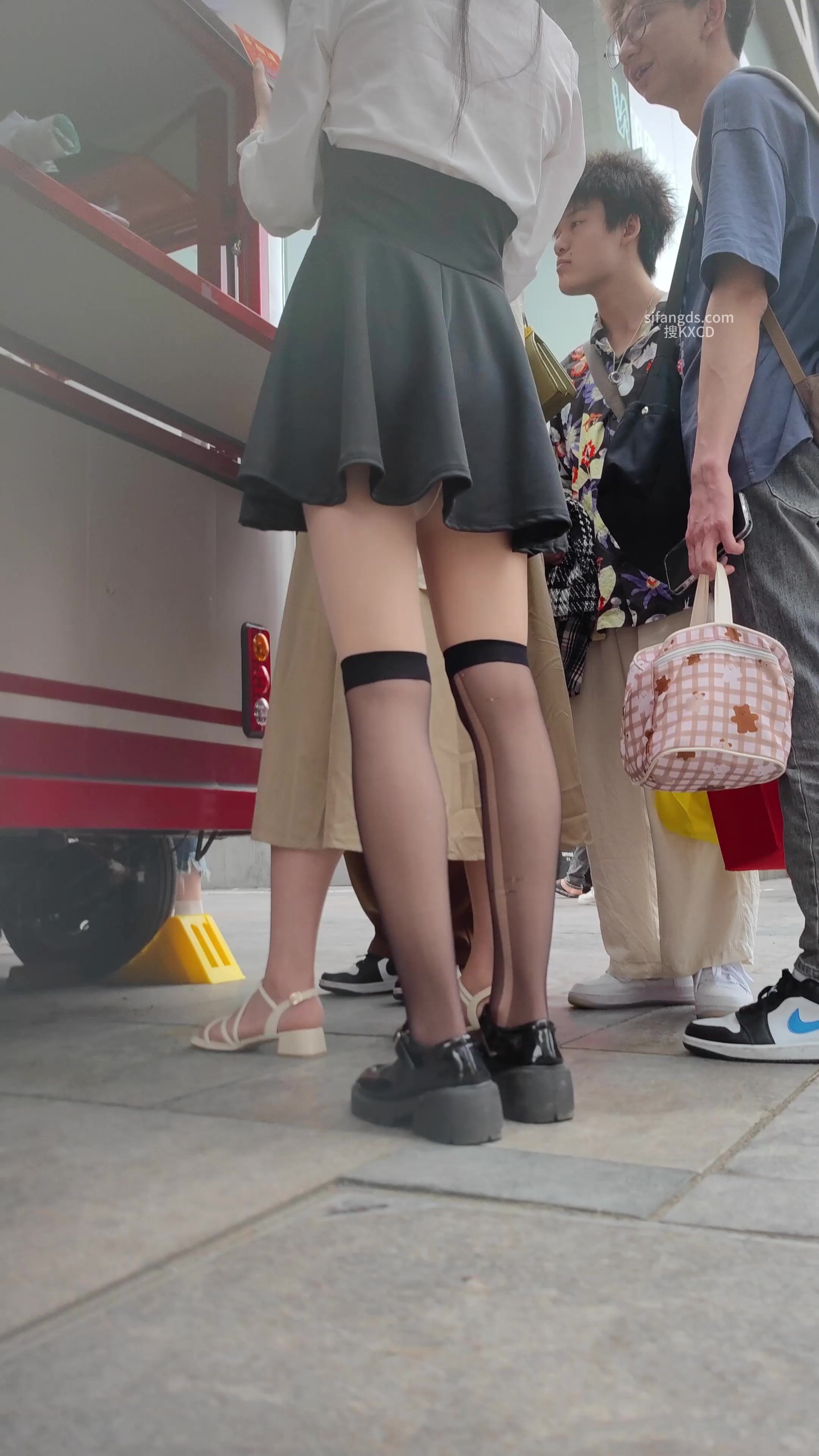 小吃店前偷拍黑色短裙肉色丝袜又套个黑丝小姐姐,身材好 肤白貌美 蓝色内内太性感
