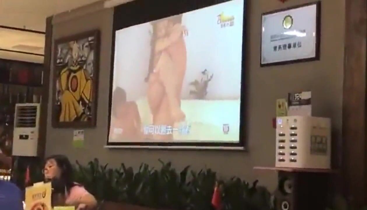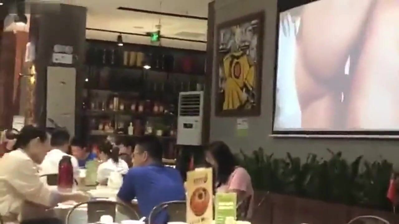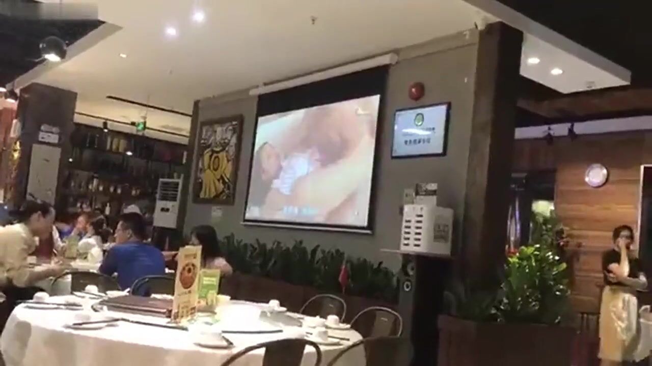 这个饭店NB啊 餐厅大屏幕公然播放啪啪视频 男女老幼生意还不错