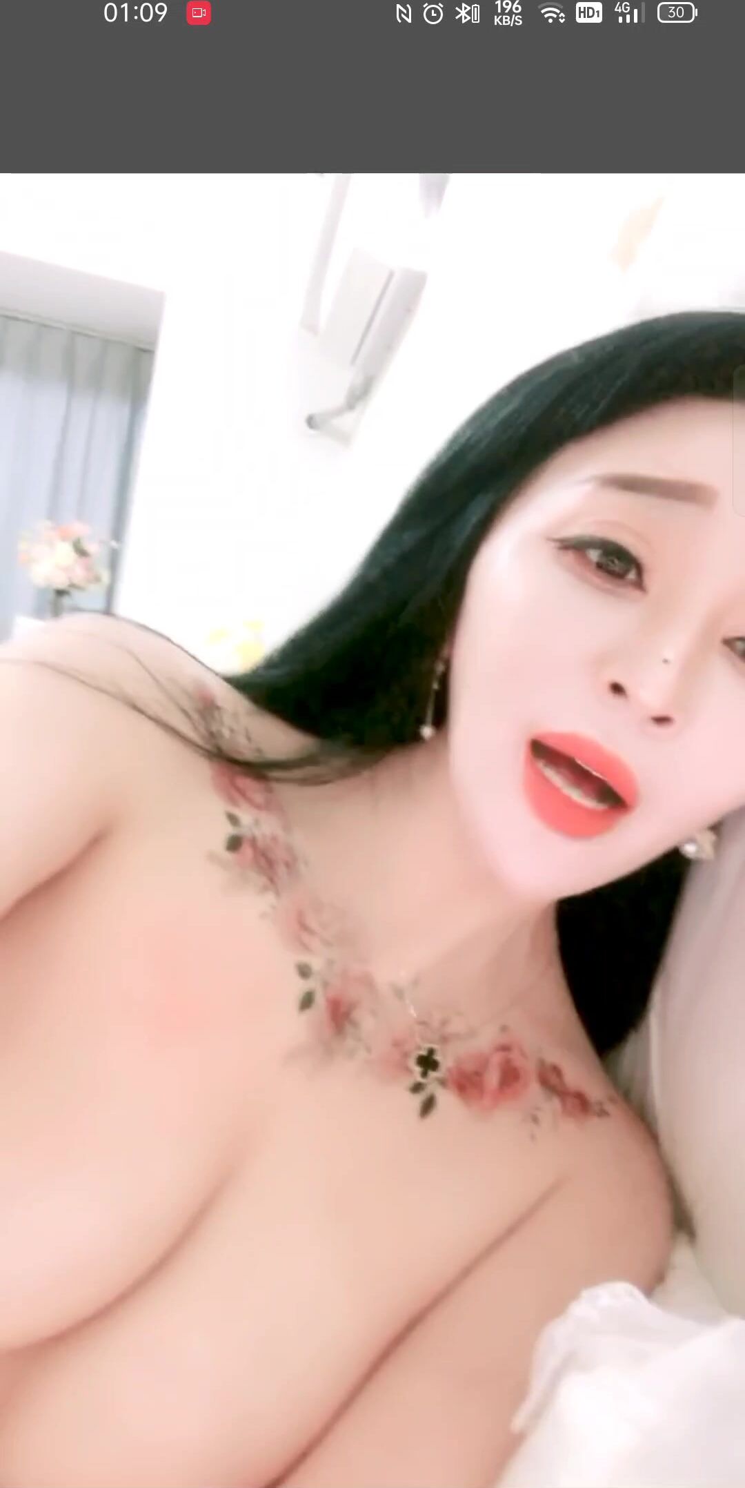 高颜值网红脸极品妹子,胸前一束花纹身,两个大白兔来回晃荡