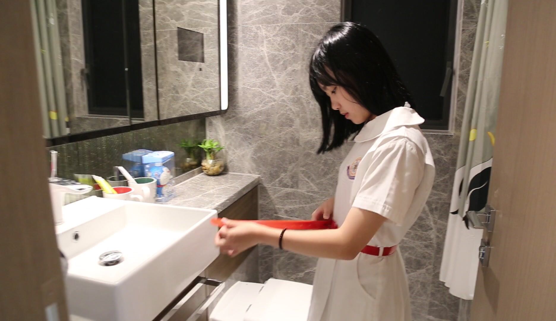 高挑白皙妹子,和猥琐男啪啪做爱,上帝视角,掰腿侧入打桩扶墙后入操逼