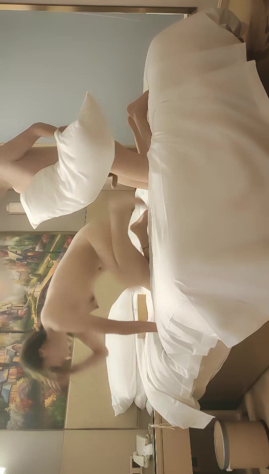 情趣酒店大圆床小情侣操逼,健壮腹肌男友 ,抱在一起调调情 ,腰细美腿小美女 ,扶着JB插入小穴 ,猛男扶着屁股后入爆操
