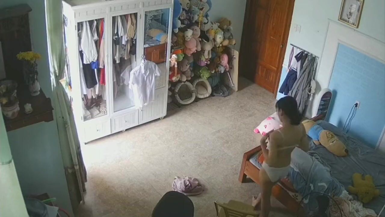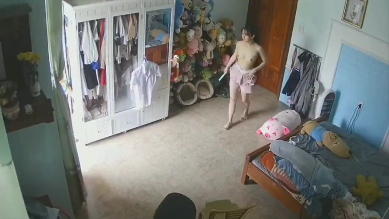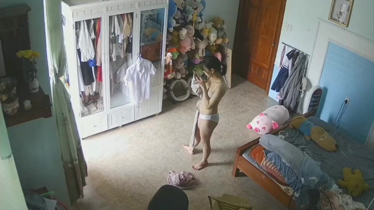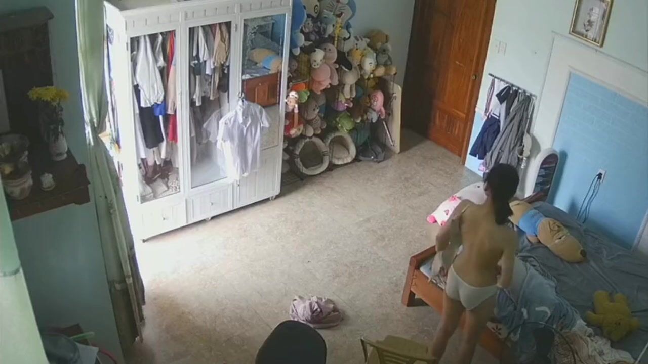 家庭摄像头偷窥漂亮美眉换衣服 大白天开着门 你说她是怕别人看到呢还是希望被人看到